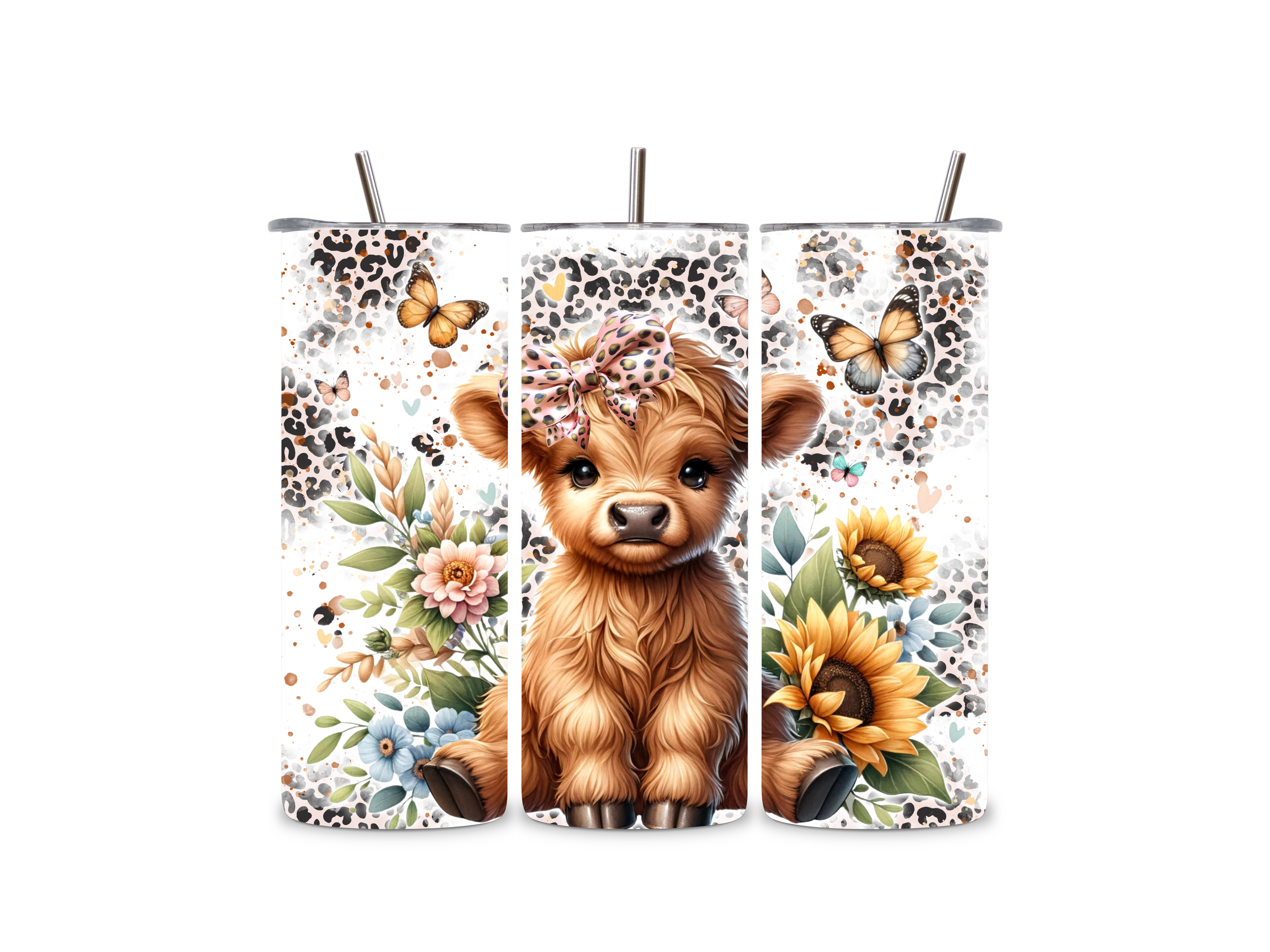20 oz Steel Tumbler – Highland Cow Baby Calf