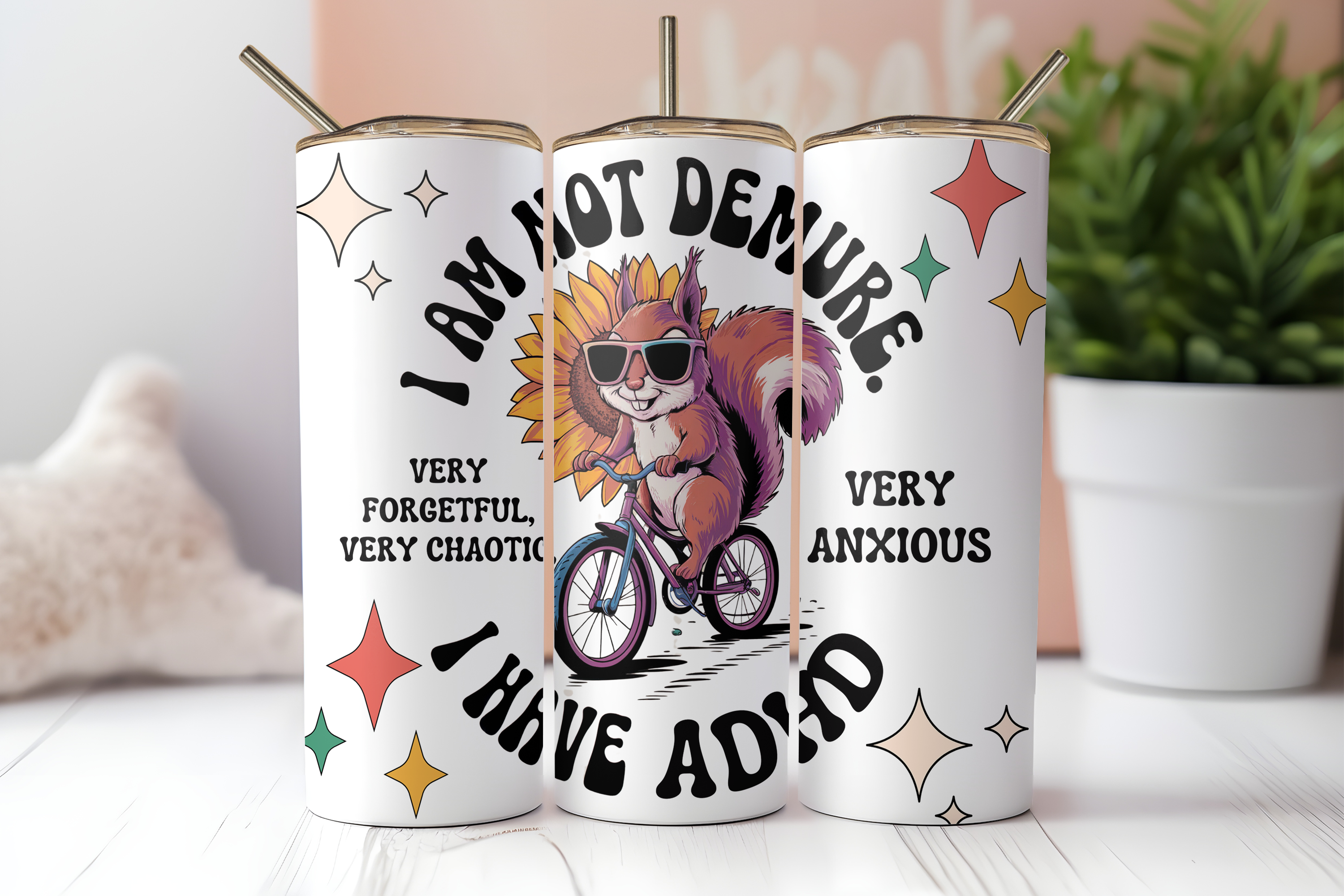 Be the first to review “20 oz Steel Tumbler – I Am Not Demure Squirrel ADHD”
