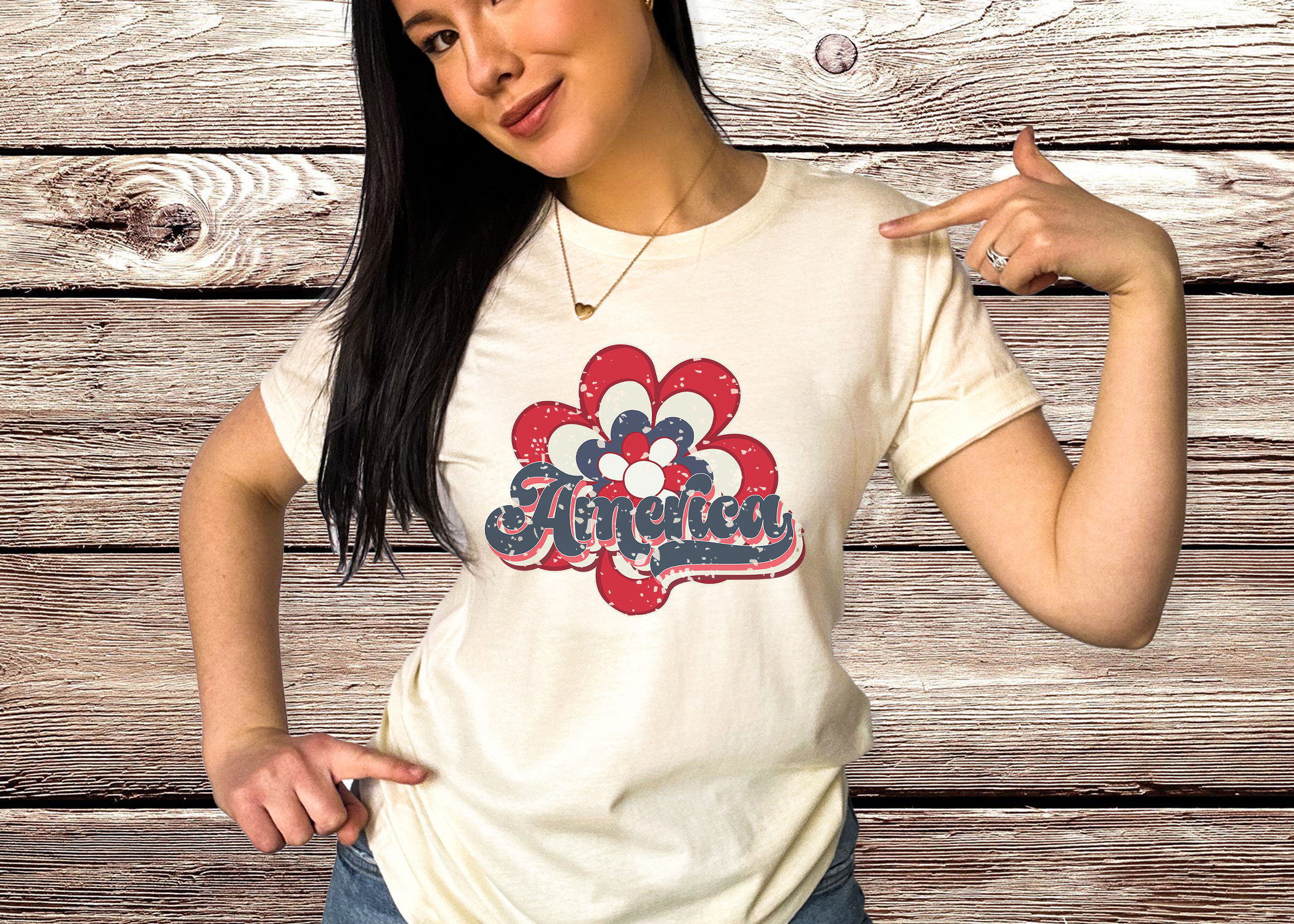 Be the first to review “America Flower T-Shirt Tee DTF 4th of July USA”