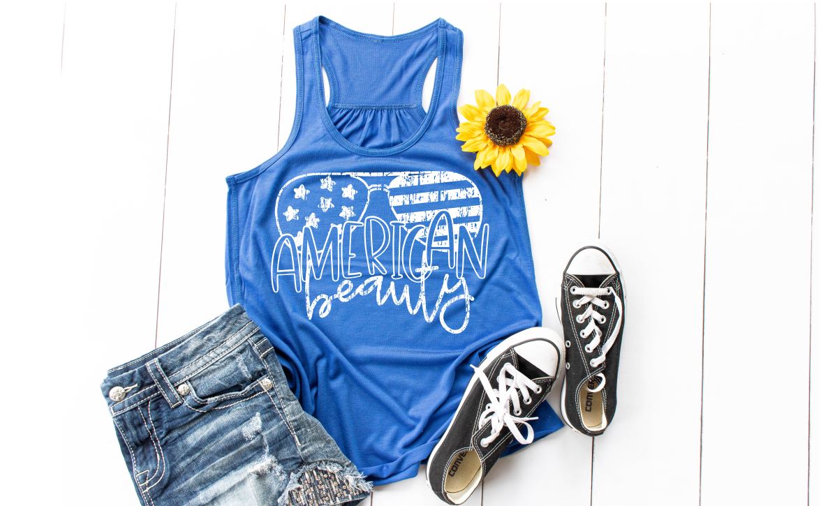 American Beauty screen print T-Shirt Tee Patriotic USA 4th of July