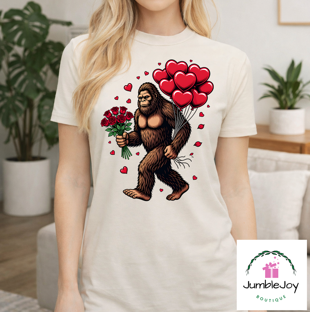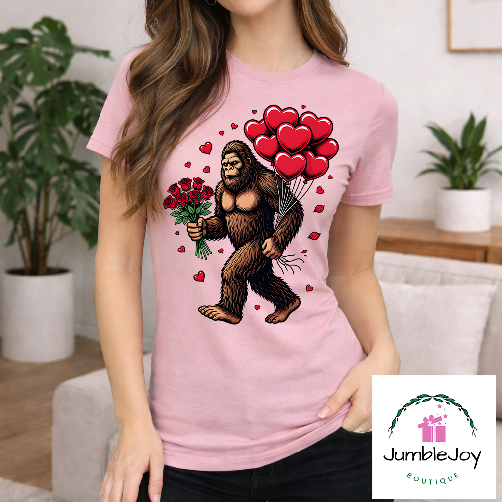 Bigfoot/Sasquatch Valentine’s Sweatshirt Raglan T-Shirt Tee