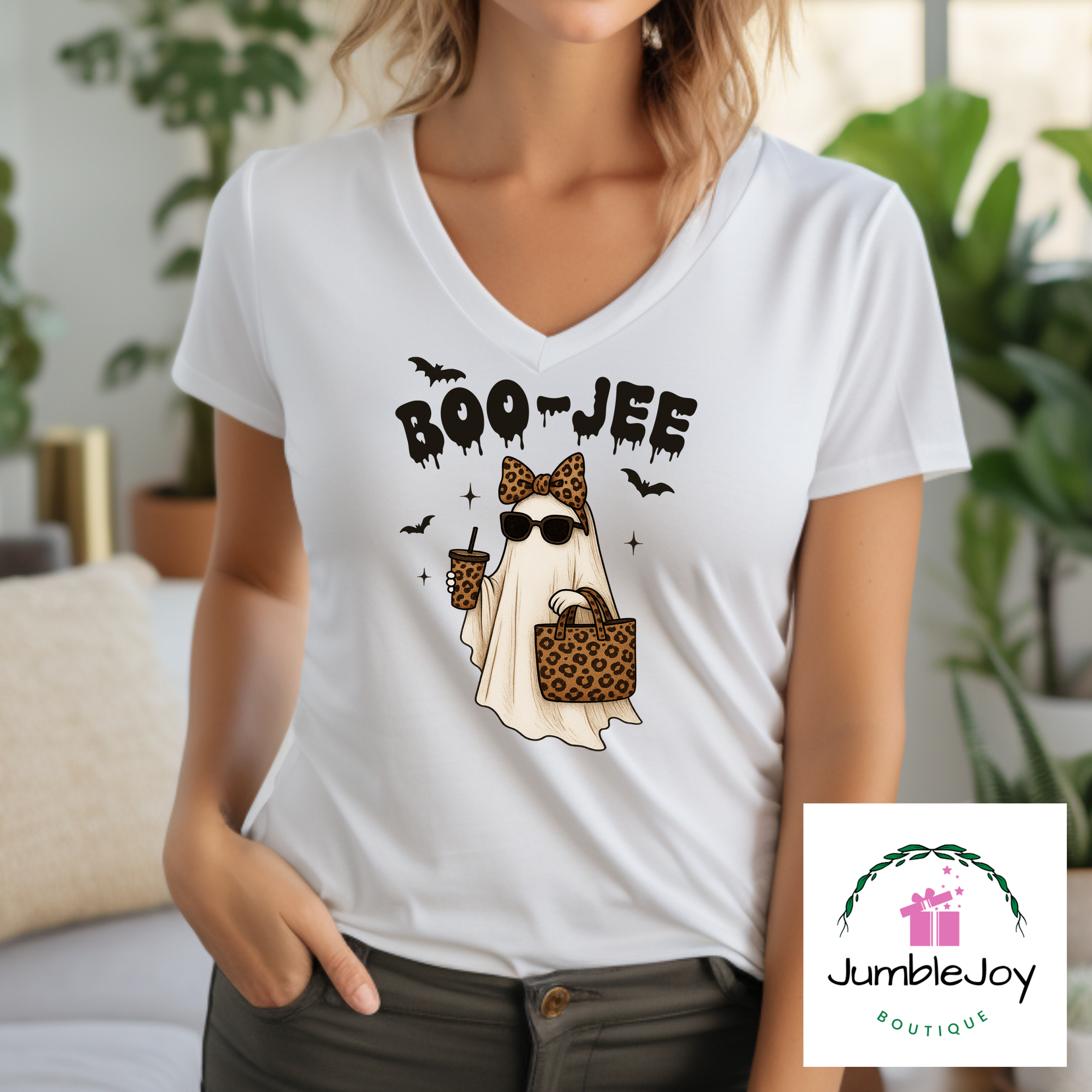 Boo-Jee Ghost Leopard T-Shirt Tee Raglan Halloween Coffee
