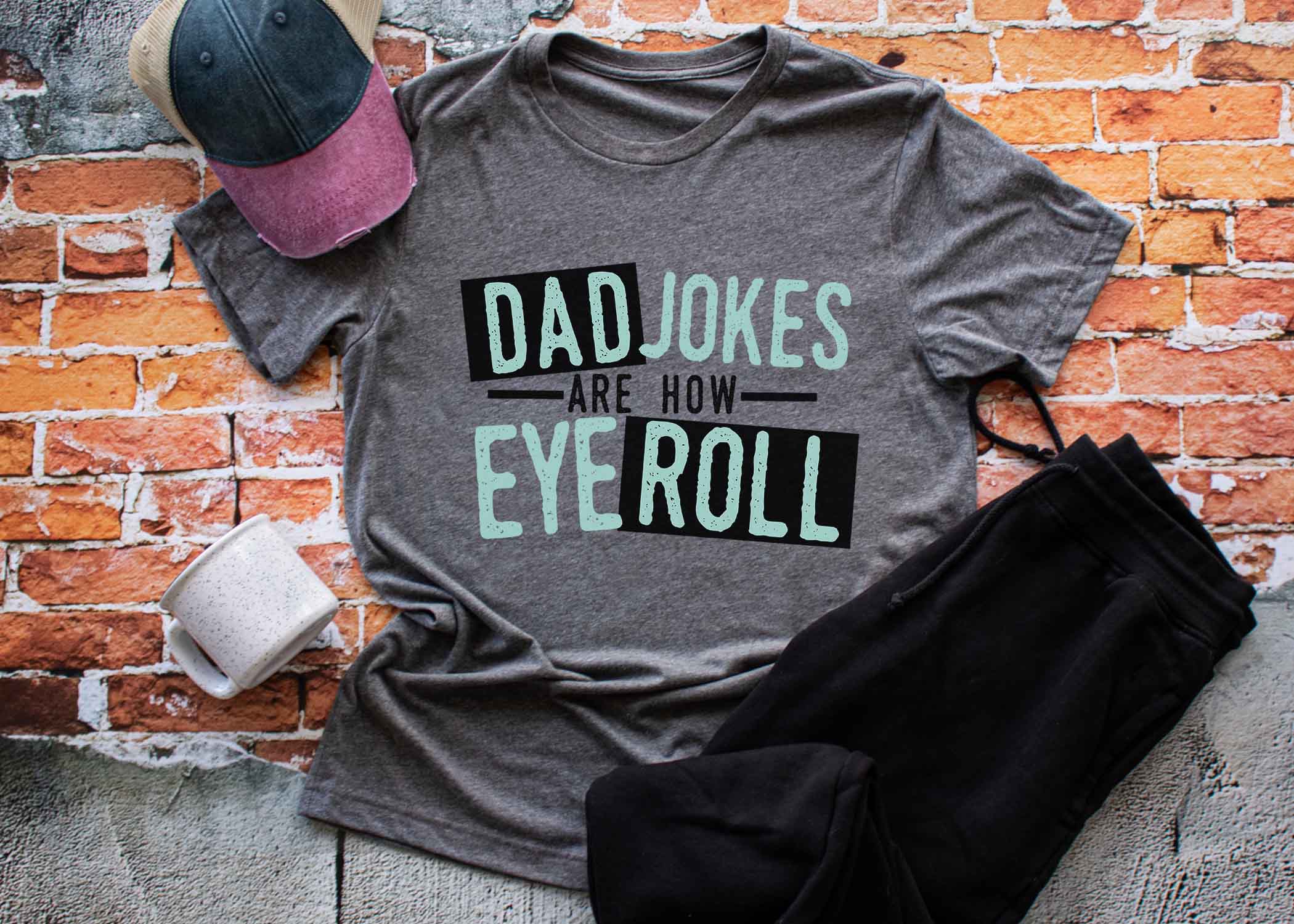 Dad Jokes Are How Eye Roll screen print T-Shirt Tee Dad Father’s Day