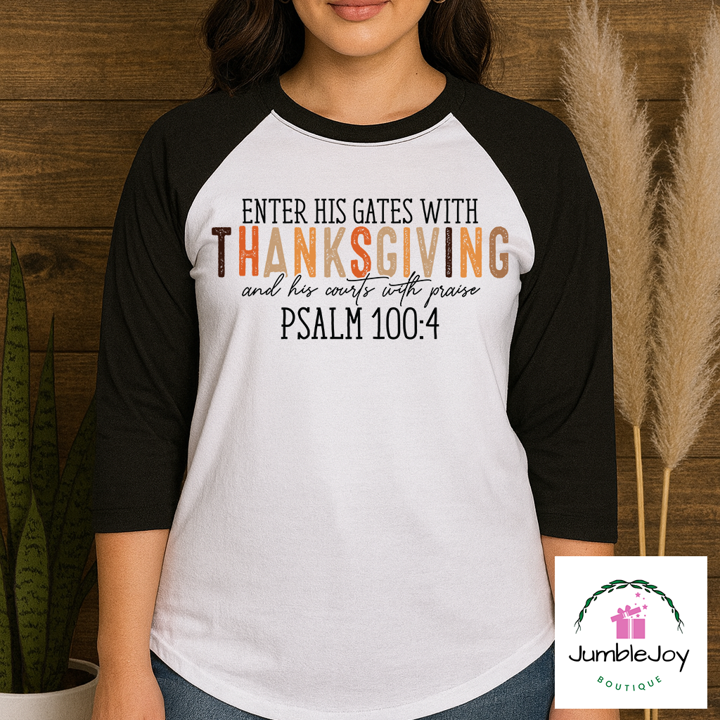 Be the first to review “Enter His Gates With Thanksgiving – Sweatshirt Raglan T-Shirt Tee”