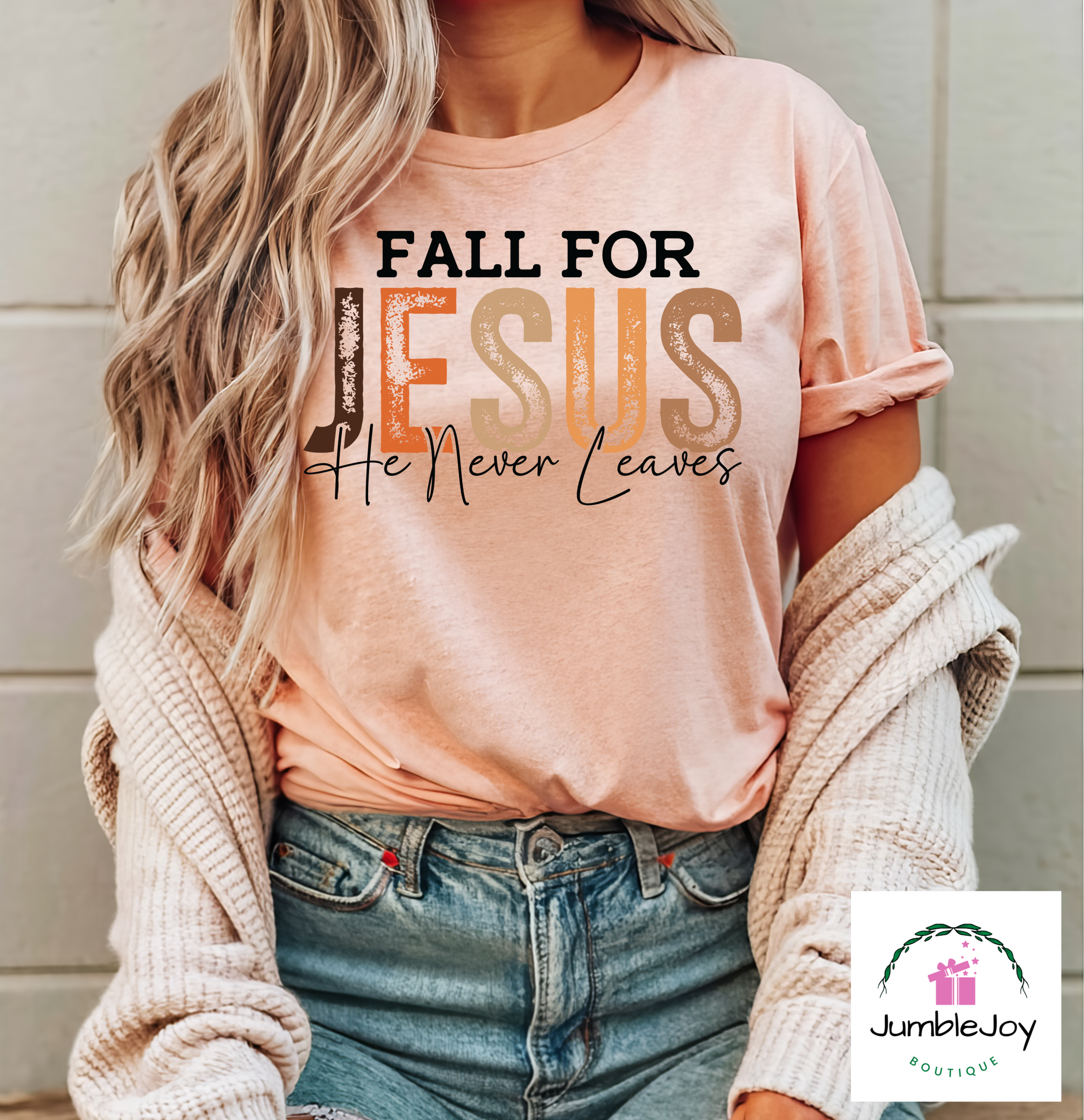 Fall For Jesus He Never Leaves T-Shirt Tee