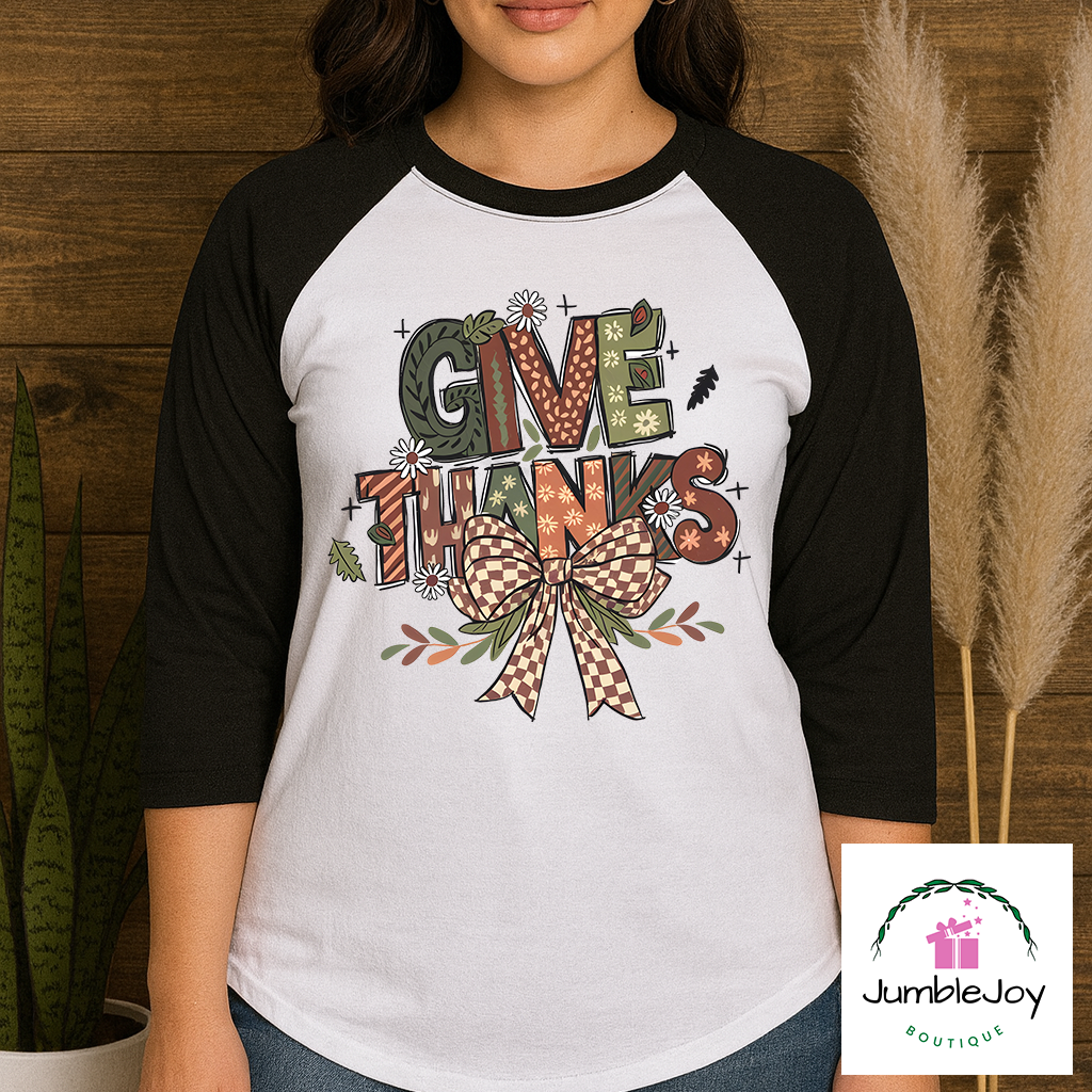 Give Thanks – Sweatshirt Raglan T-Shirt Tee Thanksgiving