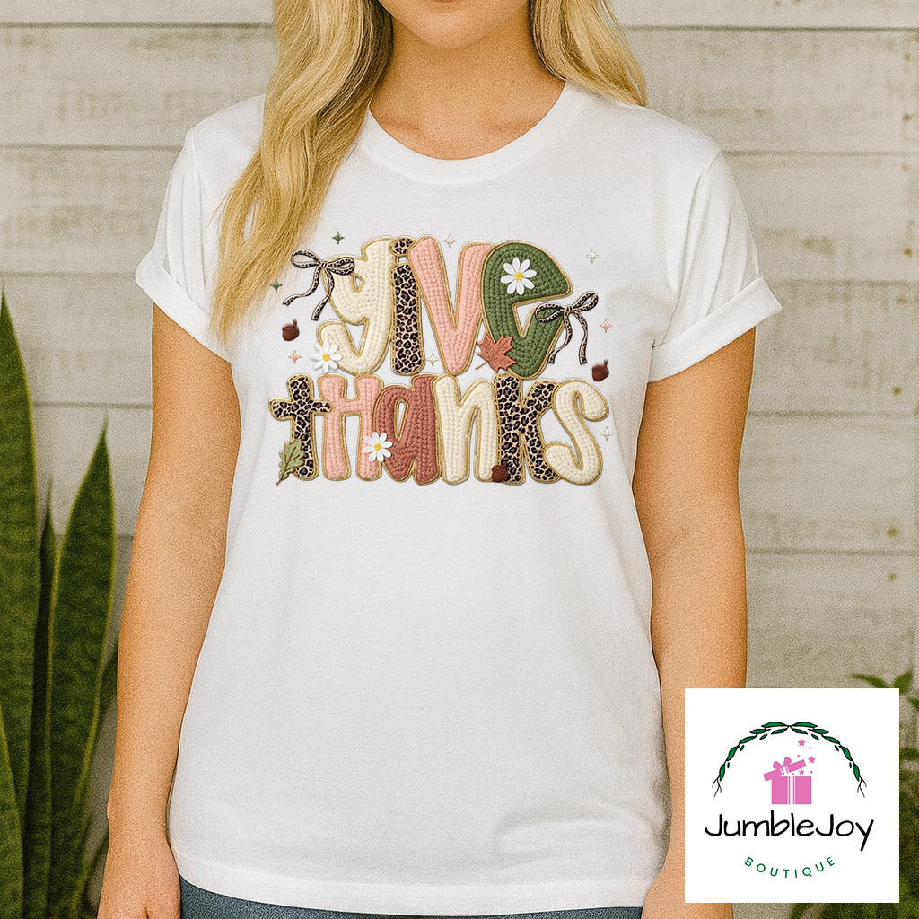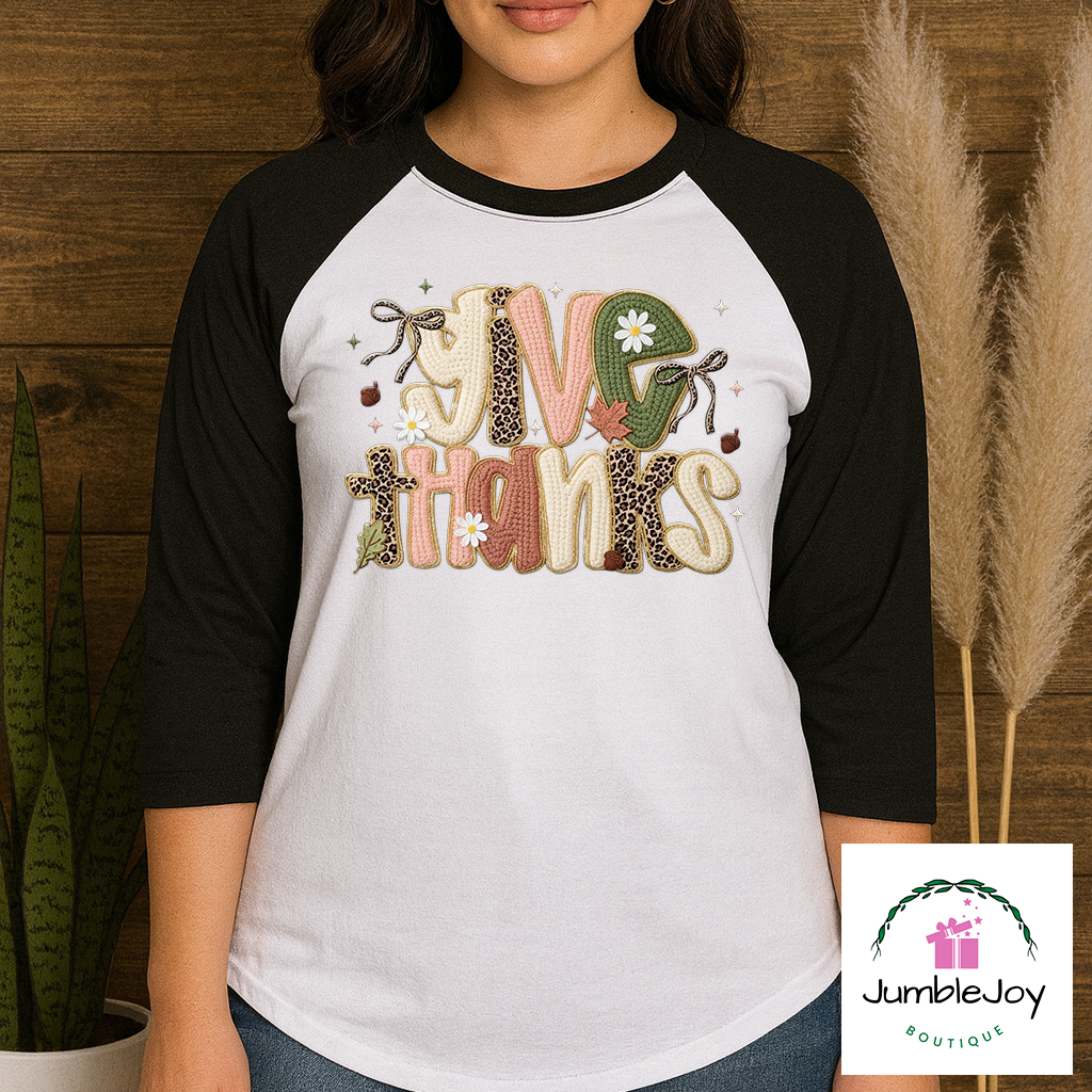 Give Thanks Faux Yarn – Sweatshirt Raglan T-Shirt Tee Thanksgiving
