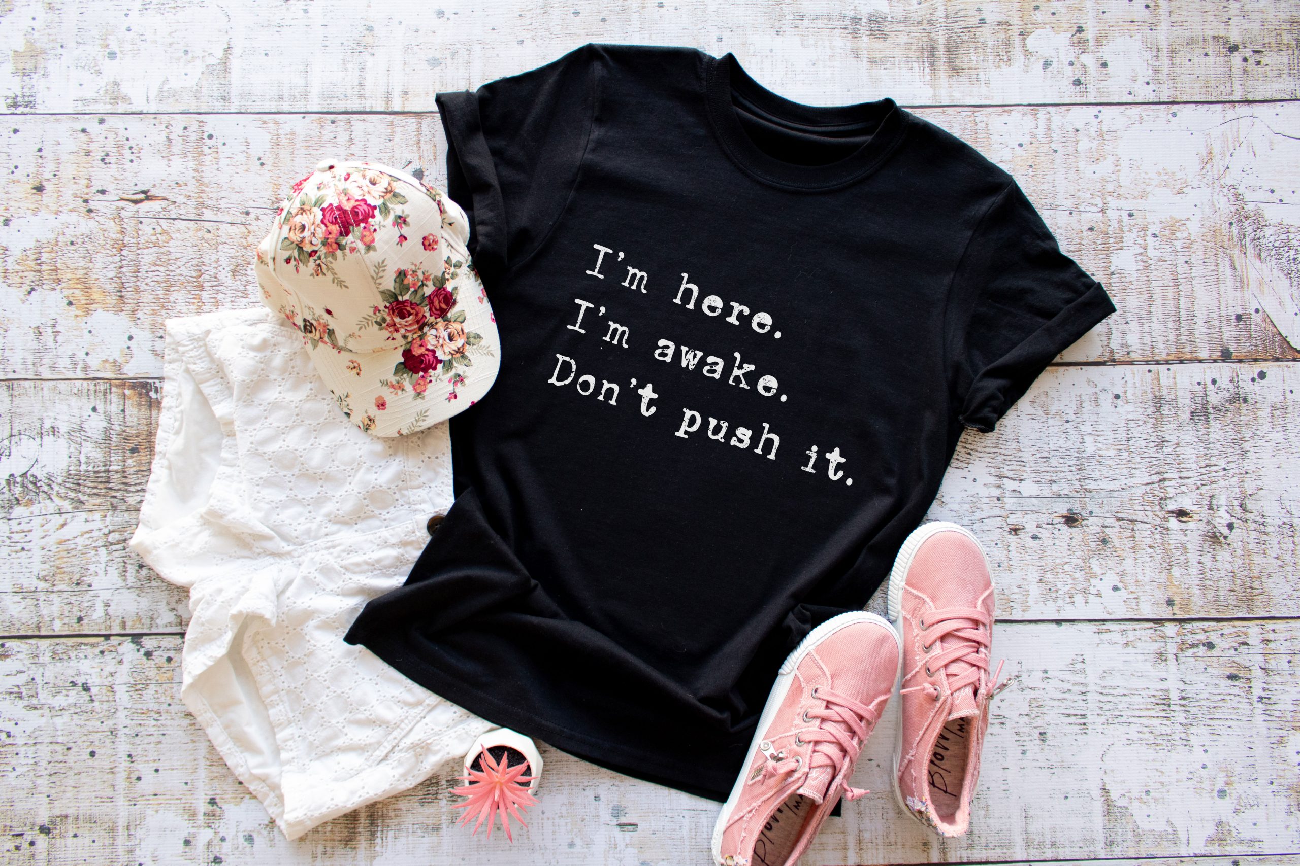 Be the first to review “I’m Here I’m Awake Don’t Push It T-Shirt”
