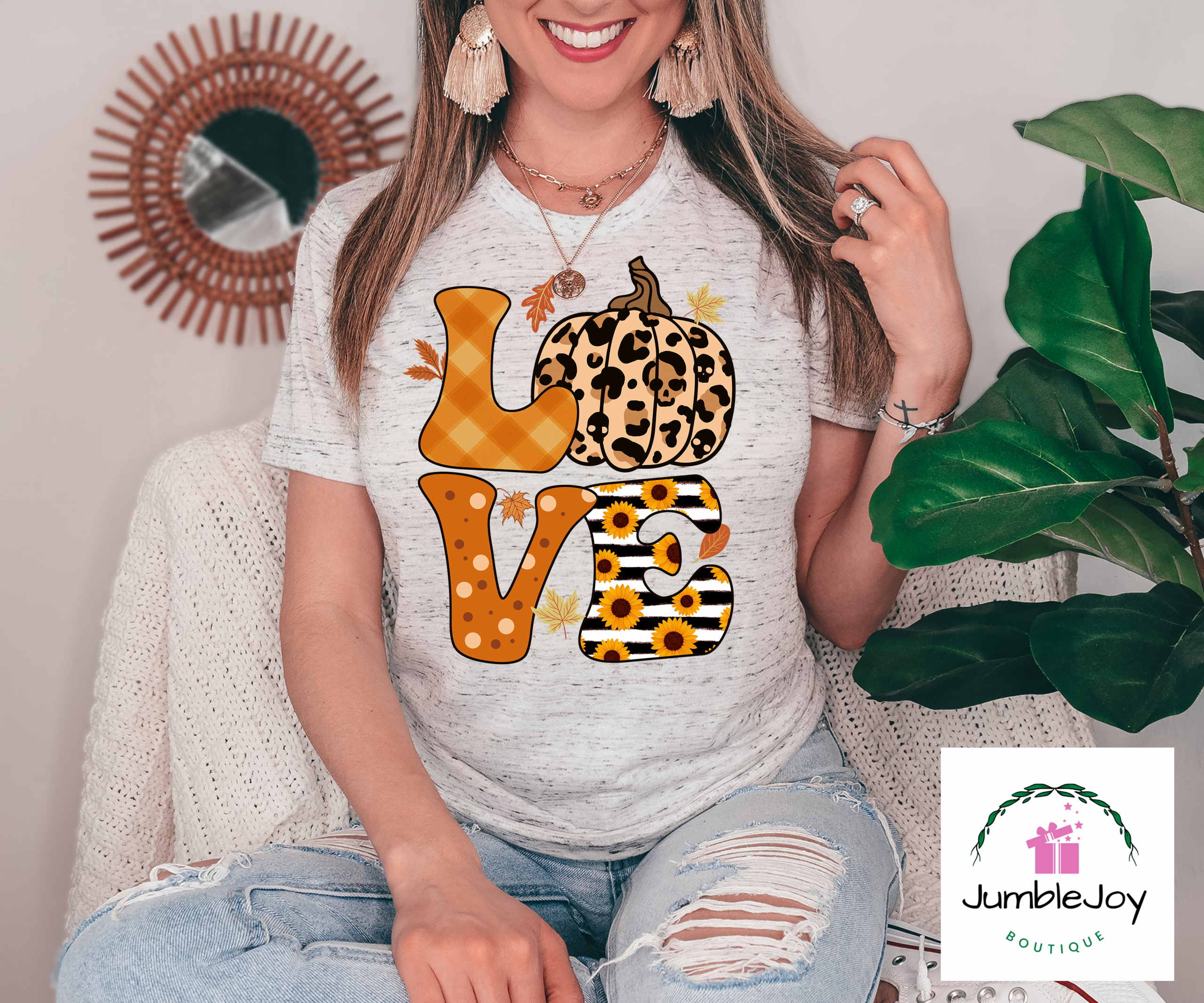 Love Fall Leopard Pumpkin Sunflowers T-Shirt Tee