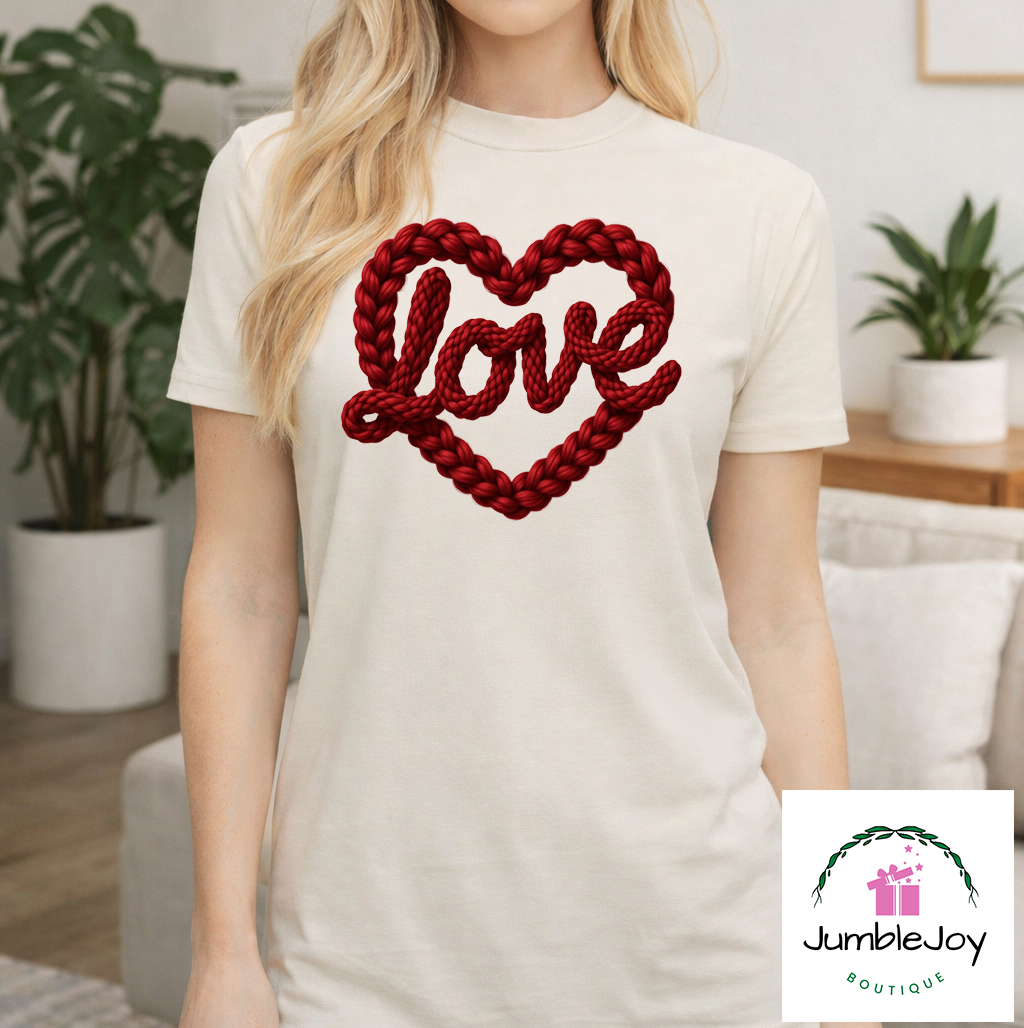 Love Rope Heart Valentine Faux Yarn Sweatshirt Raglan T-Shirt Tee