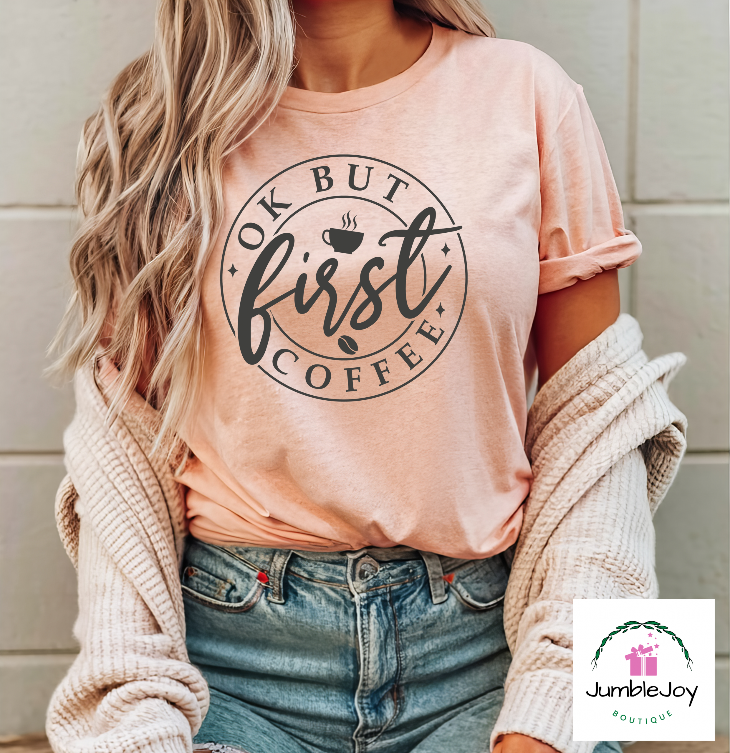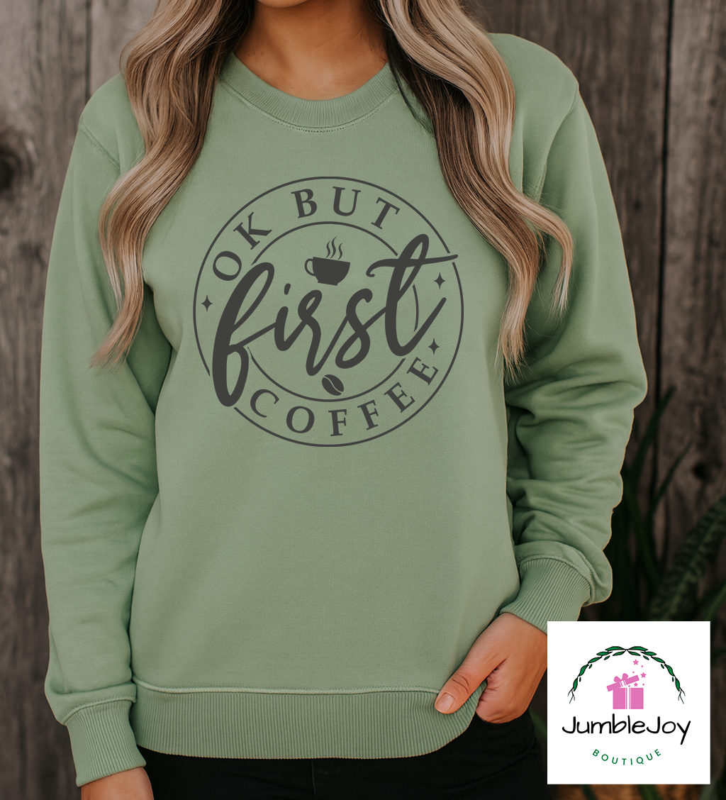 Be the first to review “Ok But First Coffee Sweatshirt Raglan T-Shirt Tee”