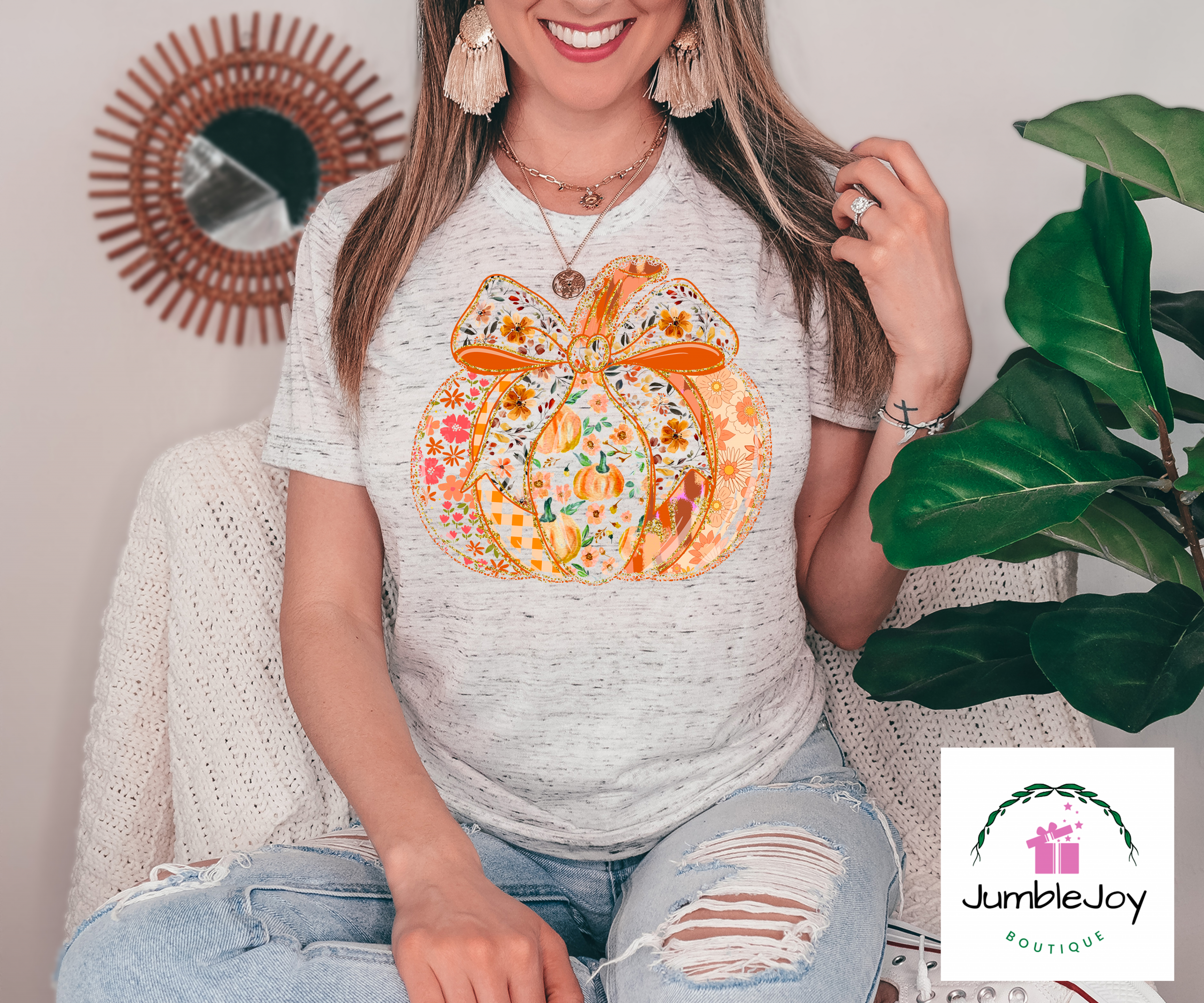 Be the first to review “Orange Patchwork Pumpkin T-Shirt Tee Fall”