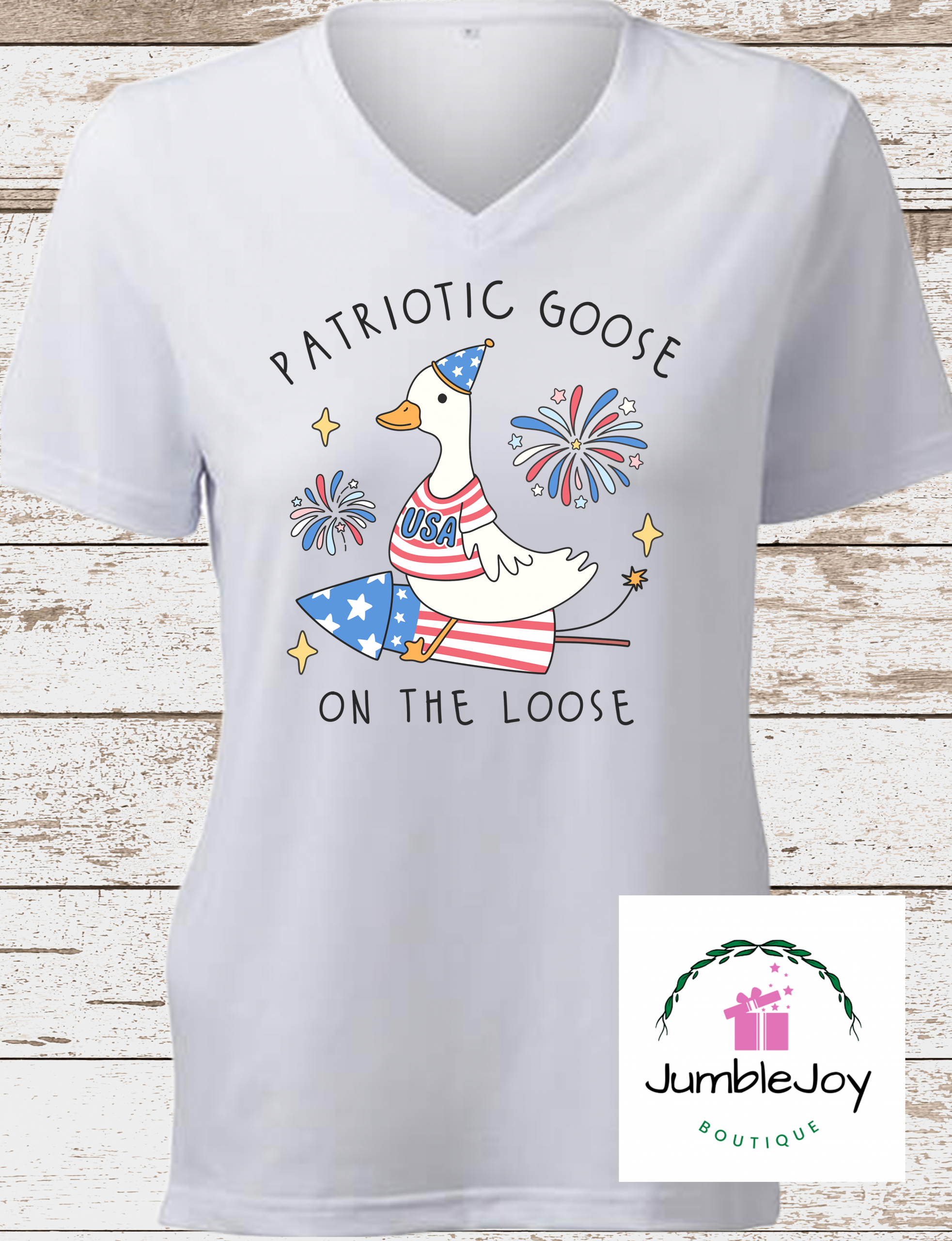 Patriotic Goose On The Loose T-Shirt Tee Patriotic USA 4th of July
