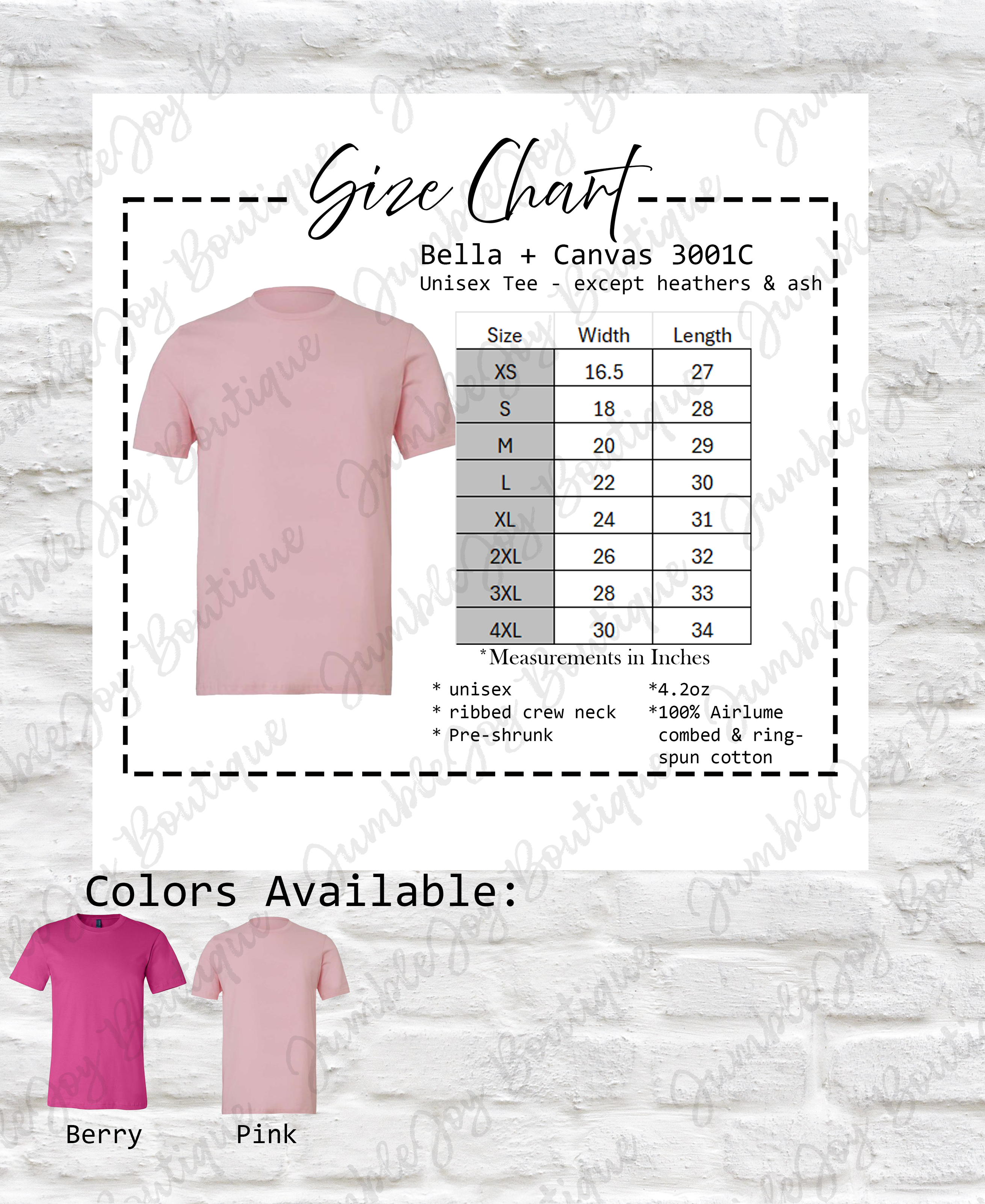 | Color | BC3001C – Berry – Unisex crew, BC3001C – Pink – Unisex crew, DT137L – Black Tank Top, DT137L – Blush Frost Tank Top, DT137L – Eucalyptus Blue Tank Top, G640 – Heather Cardinal – Unisex crew, G640 – Heather Irish Green – Unisex crew, G640 – Heather Purple – Unisex crew, G640 – Heather Royal – Unisex crew, T241 – Black – Unisex crew, T241 – Heather Athletic Blue – Unisex crew, T241 – Heather Burgundy – Unisex crew, T241 – Heather Green – unisex crew, T241 – Heather Grey – Unisex crew, T241 – Heather Peach โ Unisex crew |