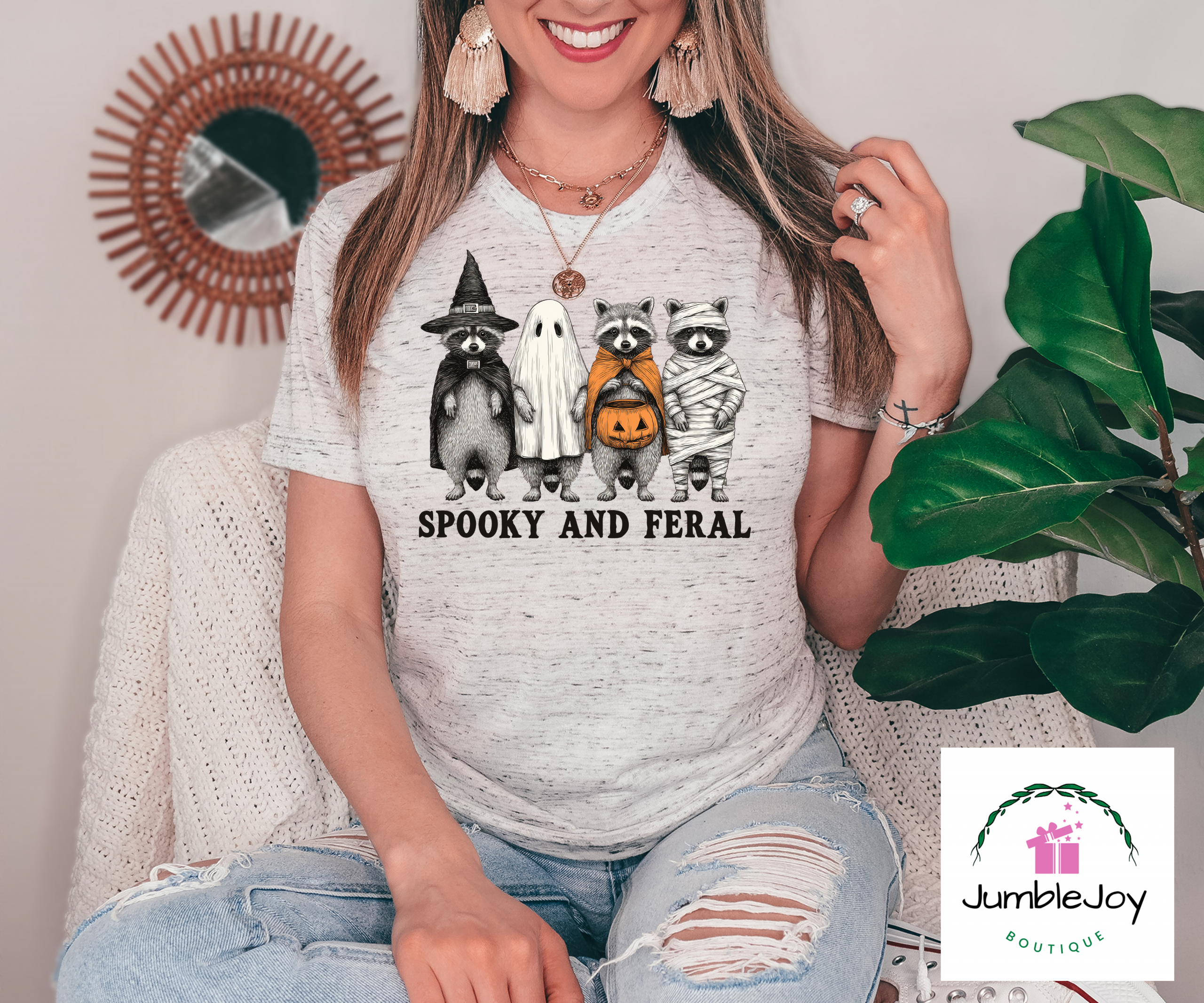 Spooky and Feral Raccoons Trick or Treat T-Shirt Tee Raglan Halloween raccoon in costumes