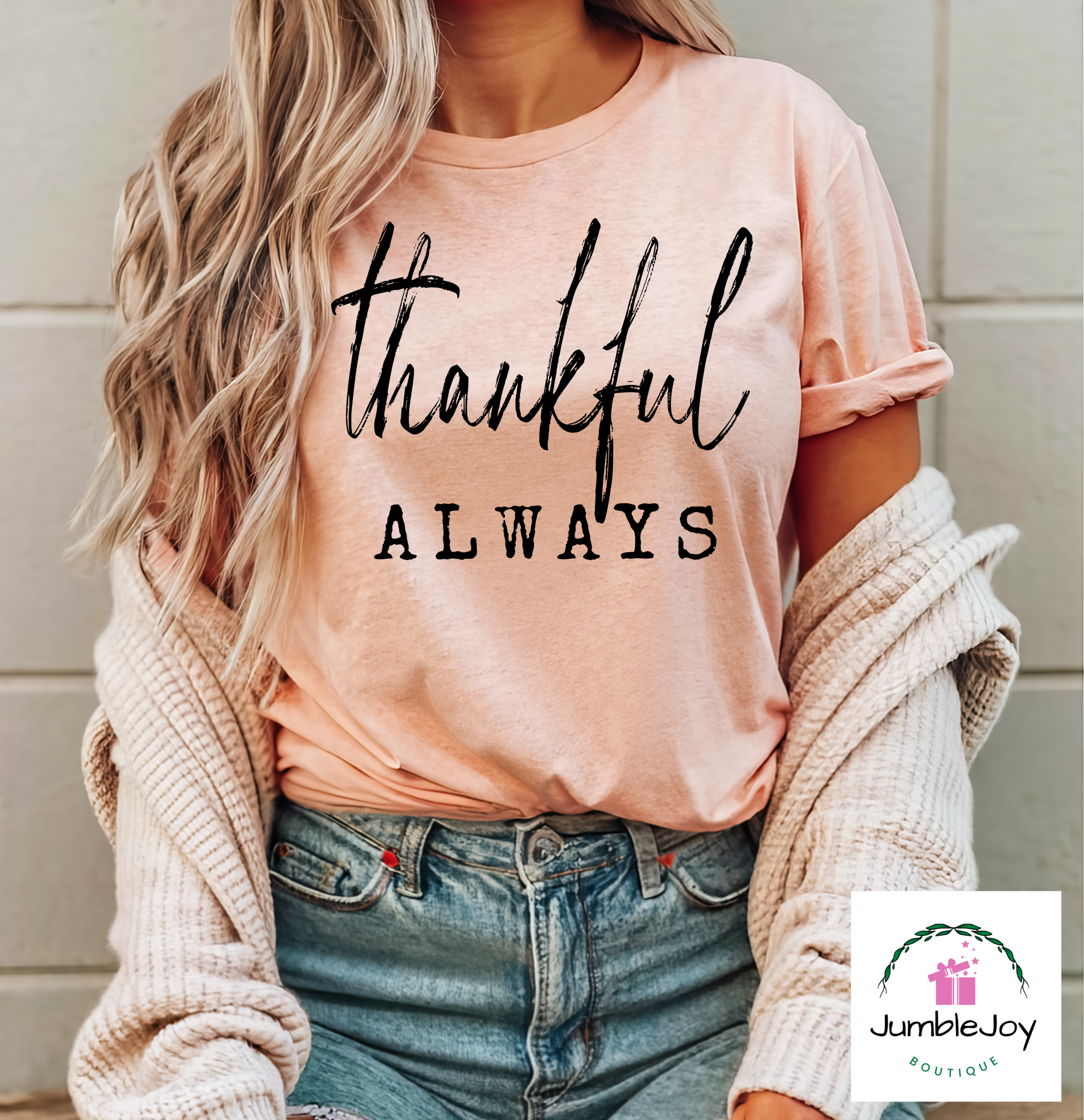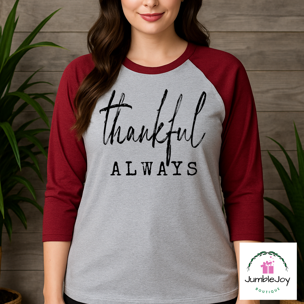 Thankful Always – Sweatshirt Raglan T-Shirt Tee Thanksgiving