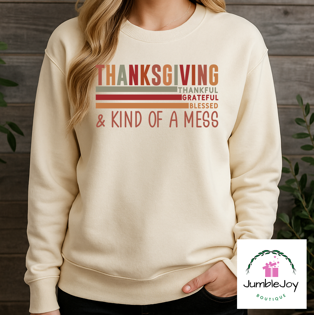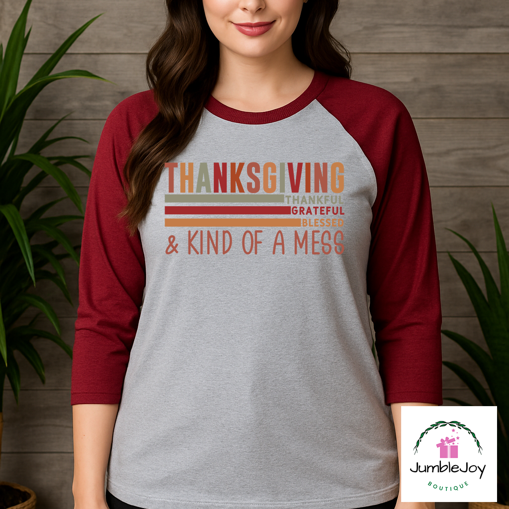 Thankful Grateful Blessed & Kind of a Mess – Sweatshirt Raglan T-Shirt Tee Thanksgiving