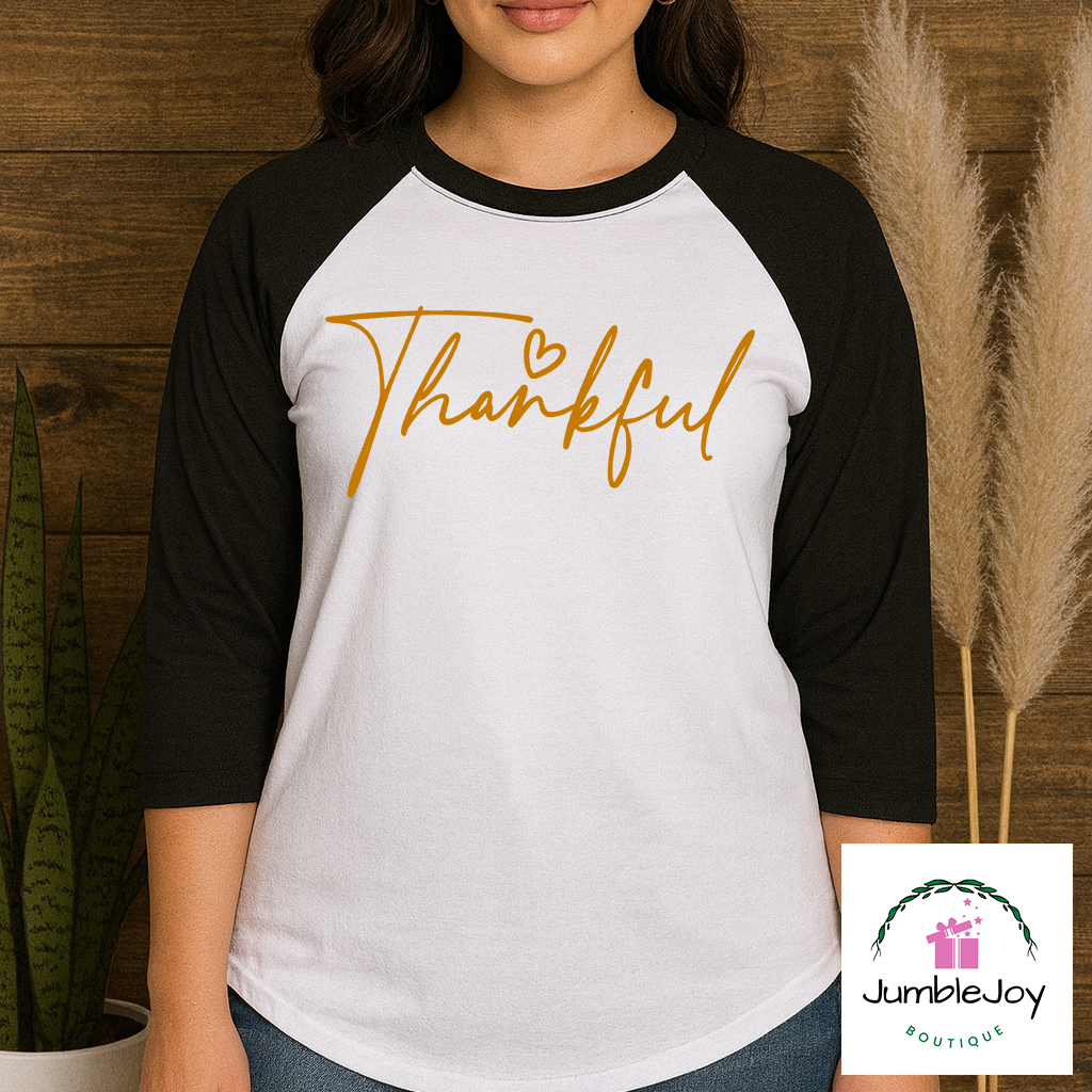 Thankful – Sweatshirt Raglan T-Shirt Tee Thanksgiving Orange