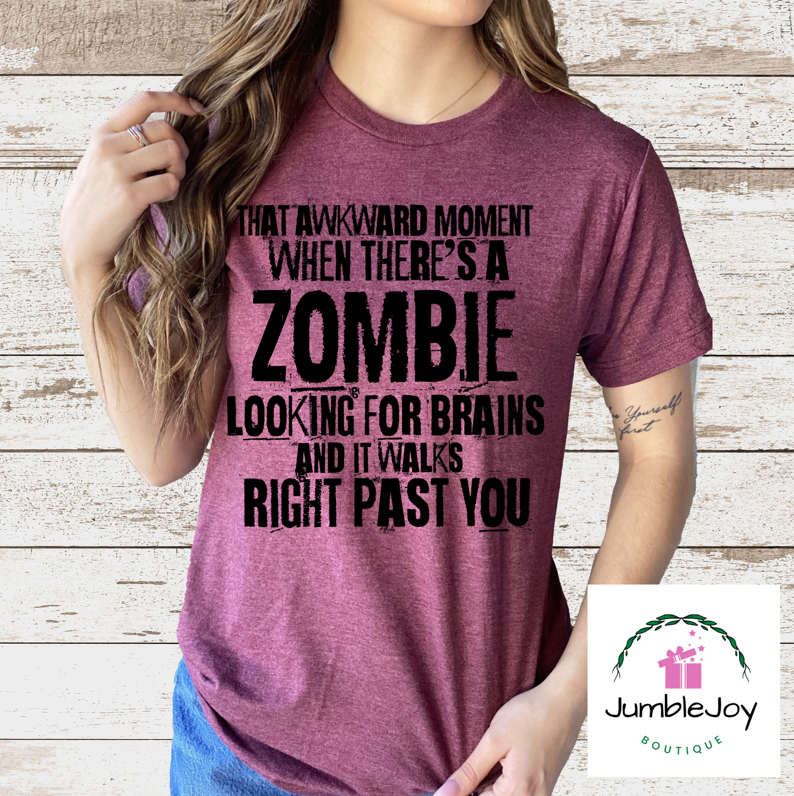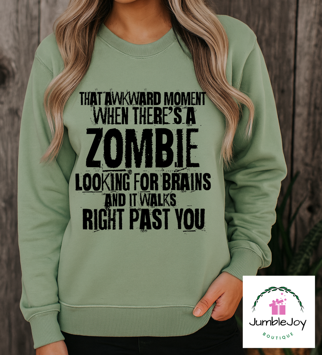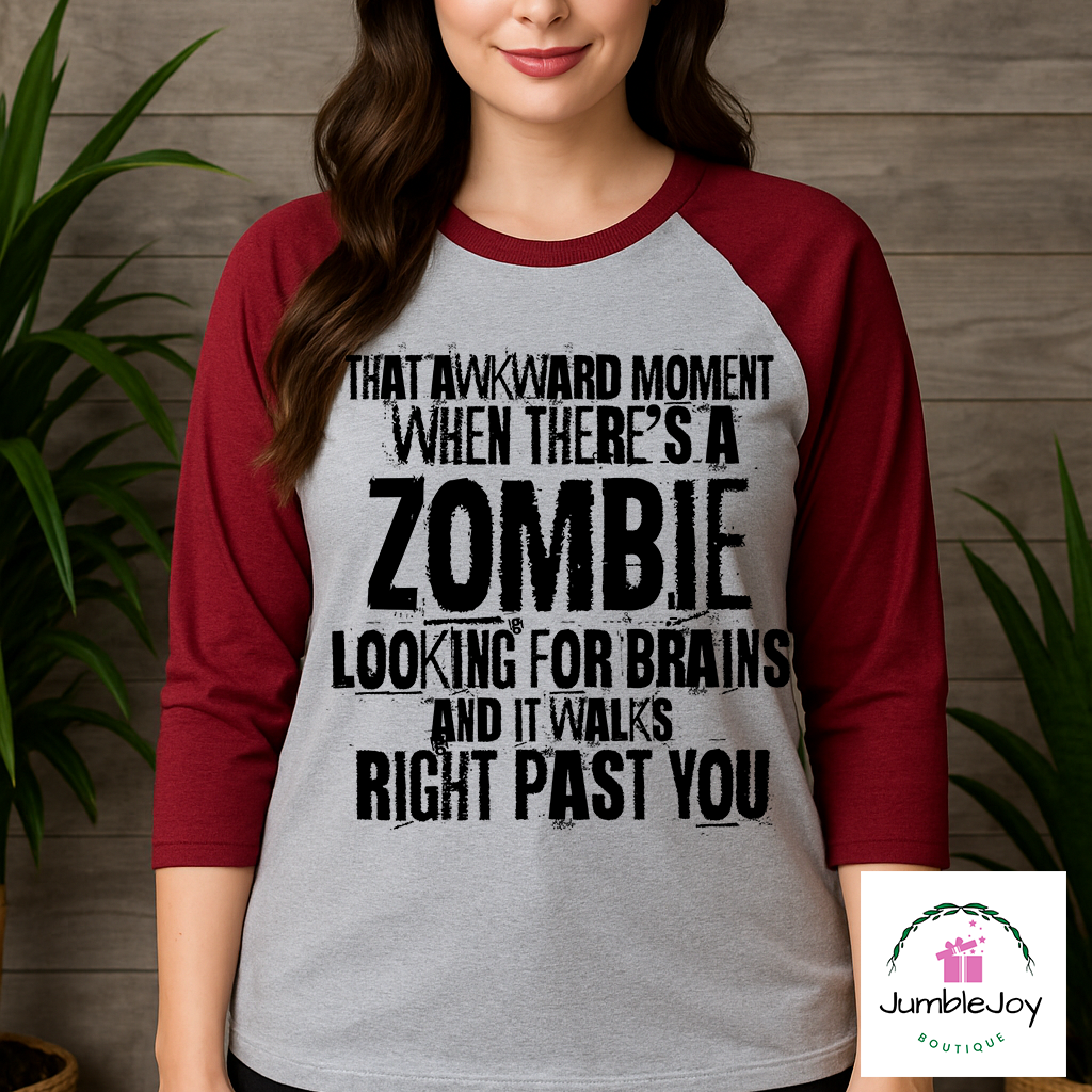 That Awkward Moment… Zombie Looking for Brains Walks Past You – Sweatshirt Raglan T-Shirt Tee Halloween